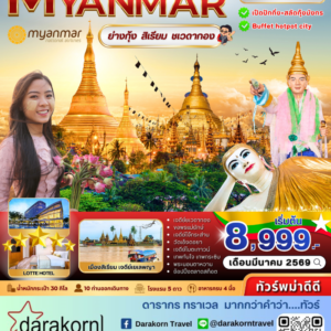 ทัวร์พม่า – ย่างกุ้ง สิเรียม-ชเวดากอง 2วัน1คืน(8M)เดือนมีนาคม 2569