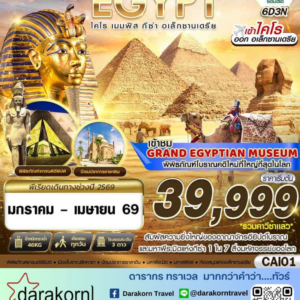 ทัวร์อียิปต์ – ANCIENT EGYPT ไคโร เมมฟิส กีซ่า อเล็กซานเดรีย 6วัน3คืน(SV)เดือนมกราคม – เมษายน 2569